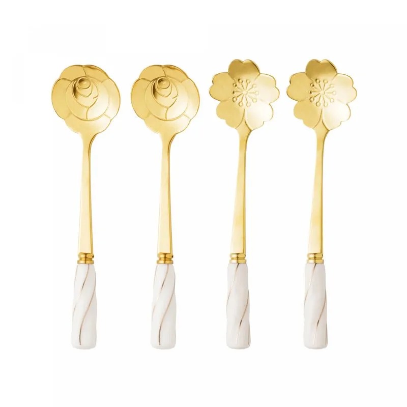Adquira o Conjunto 4 Colheres de Chá de Aço Inox com Cabo de Cerâmica Flowers Dourado/Branco da Wolff e adicione um toque floral e sofisticado à sua experiência à mesa. Cada uso é uma celebração da tradição, qualidade e design que caracterizam a Wolff.